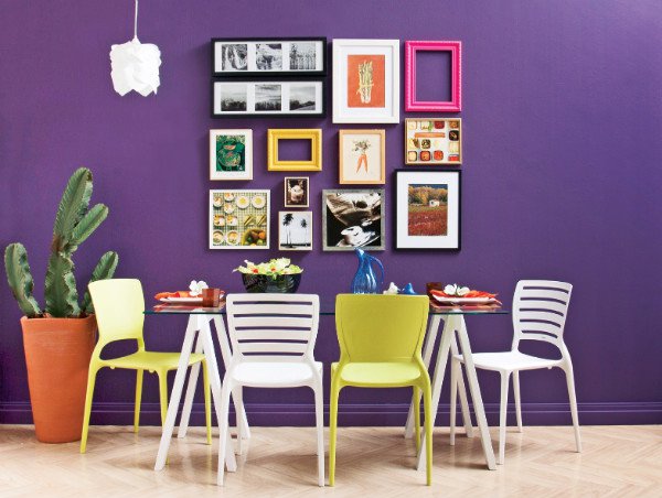 A sala de jantar ganha toque pessoal com a composição dos quadros.